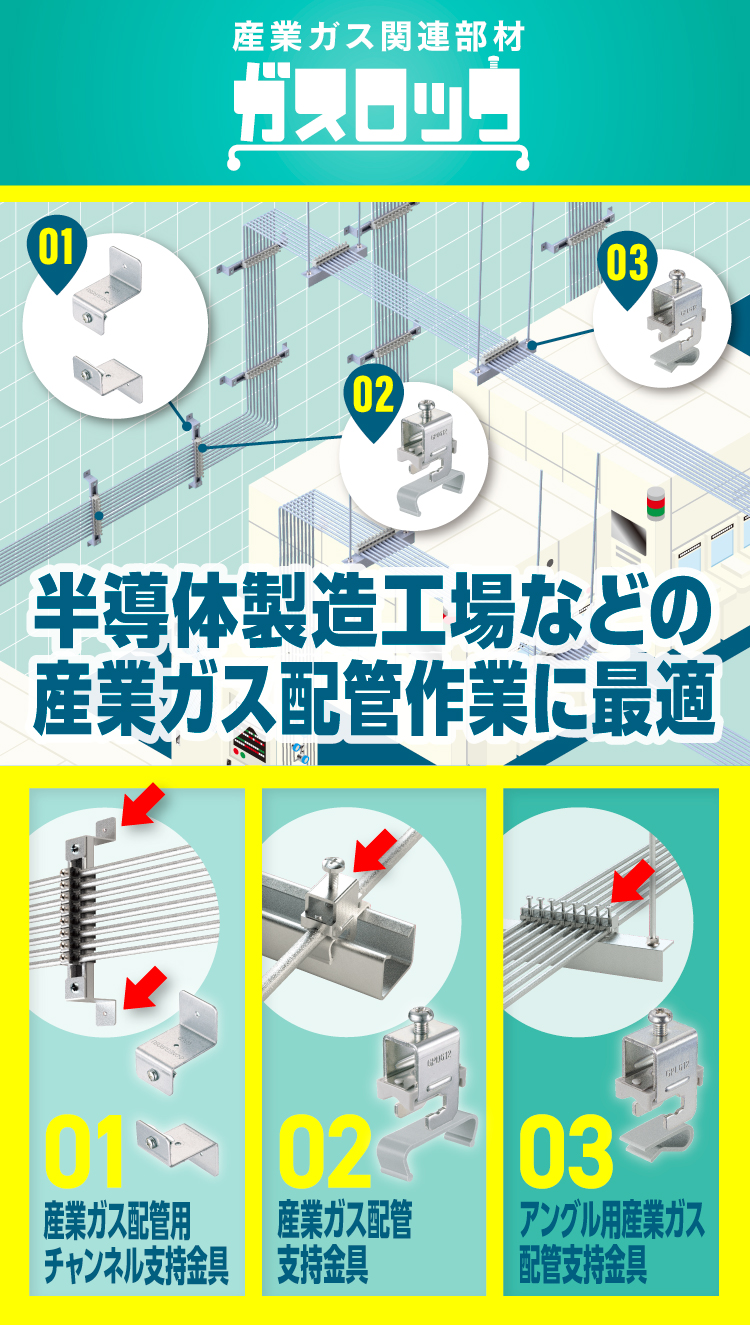 産業ガス配管用チャンネル支持金具 品番:GASD 販売単位:1対(2個組) 標準価格:480円 ▶詳しくはコチラ