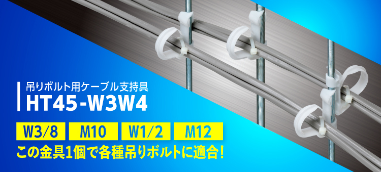 品番:HT45-W3W4 適合:W3/8、W1/2、M10、M12 推奨のVVFケーブル本数:1.6・2.0×2C、1.6・2.0×3C 各6回線まで 販売単位:10個 標準価格:68円 ▶詳しくはコチラ