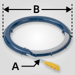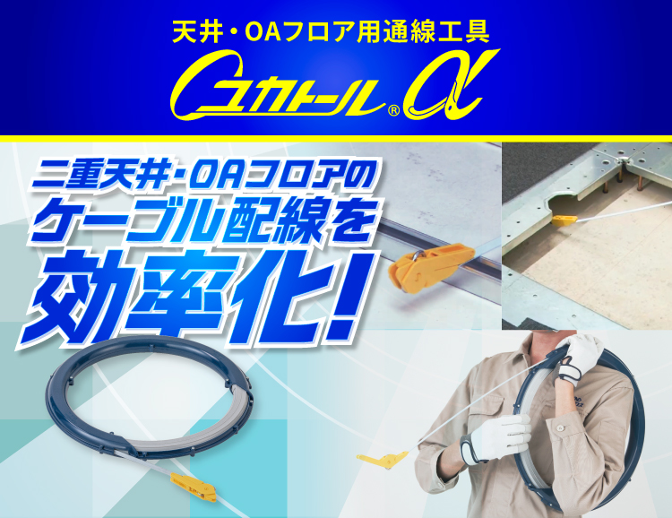 天井・OAフロア用通線工具『ユカトールα』 品番:RHS15(本体) リード線長さ(A):15m ケース寸法(B):φ400mm 販売単位:1巻 標準価格:29,300円 品番:RHS15H(替リーダーヘッド) 販売単位:1個 標準価格:1,520円